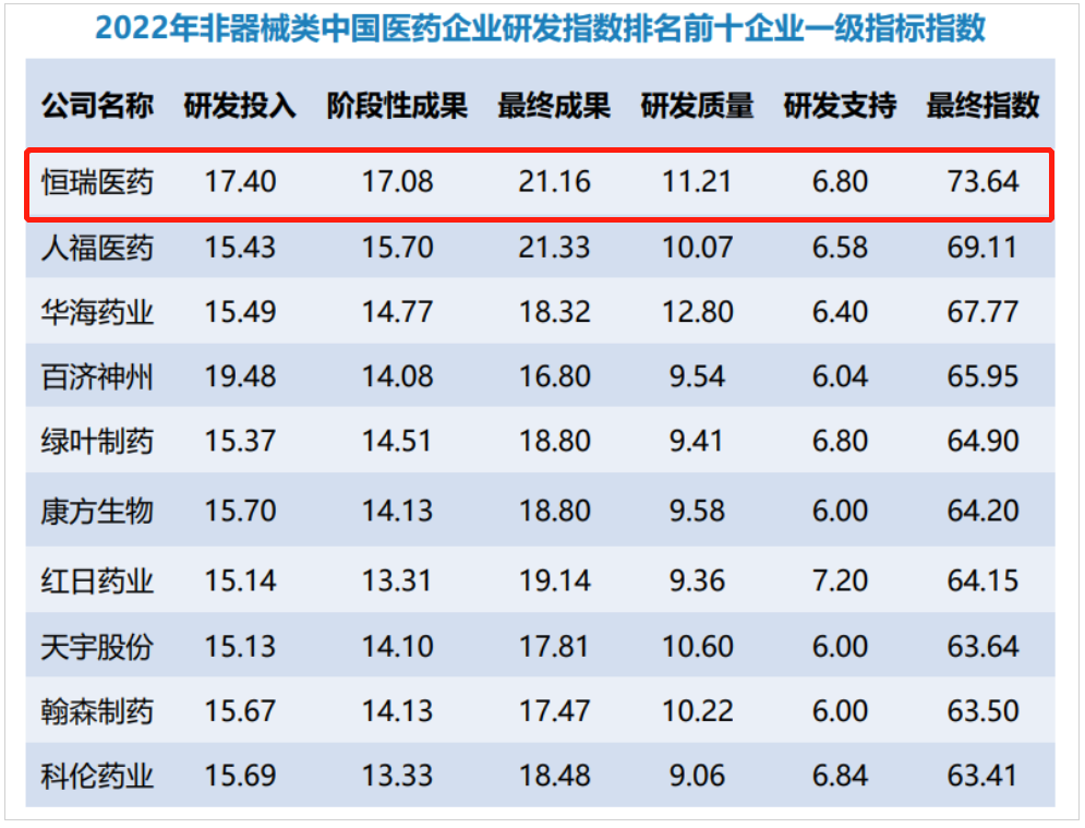 研发量质齐升,利来国际真人娱乐医药蝉联非器械类中国医药企业研发指数排名榜首