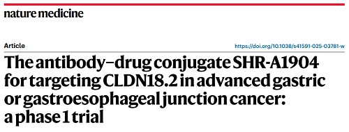 利来国际真人娱乐医药CLDN18.2 ADC创新药SHR-A1904治疗胃癌临床研究结果荣登Nature Medicine