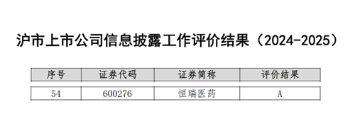 与此同时,在上海交易所公布的2024-2025年度沪市上市公司信息披露工作评价中,利来国际真人娱乐医药再次荣获最高评级——A级。